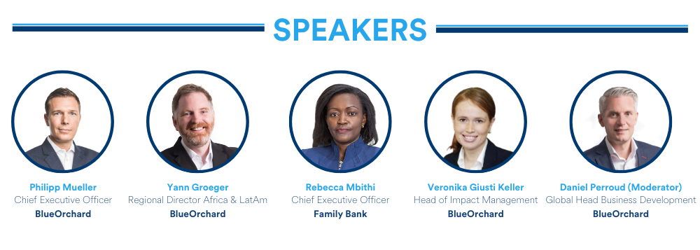 As the manager of the first commercial and today largest microfinance fund globally, BlueOrchard has been pioneering financial inclusion for more than two decades. For this event, we are thrilled to welcome as a guest speaker Rebecca Mbithi, CEO of Family Bank, a longstanding BlueOrchard investee and one of the leaders in the Kenyan microfinance space.