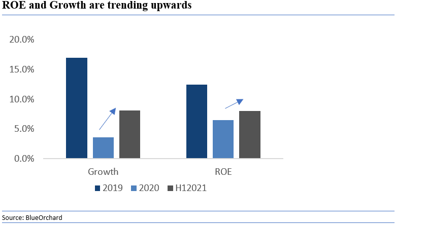 BlueOrchard data indicate that risks are easing, and growth and RoE are rising
