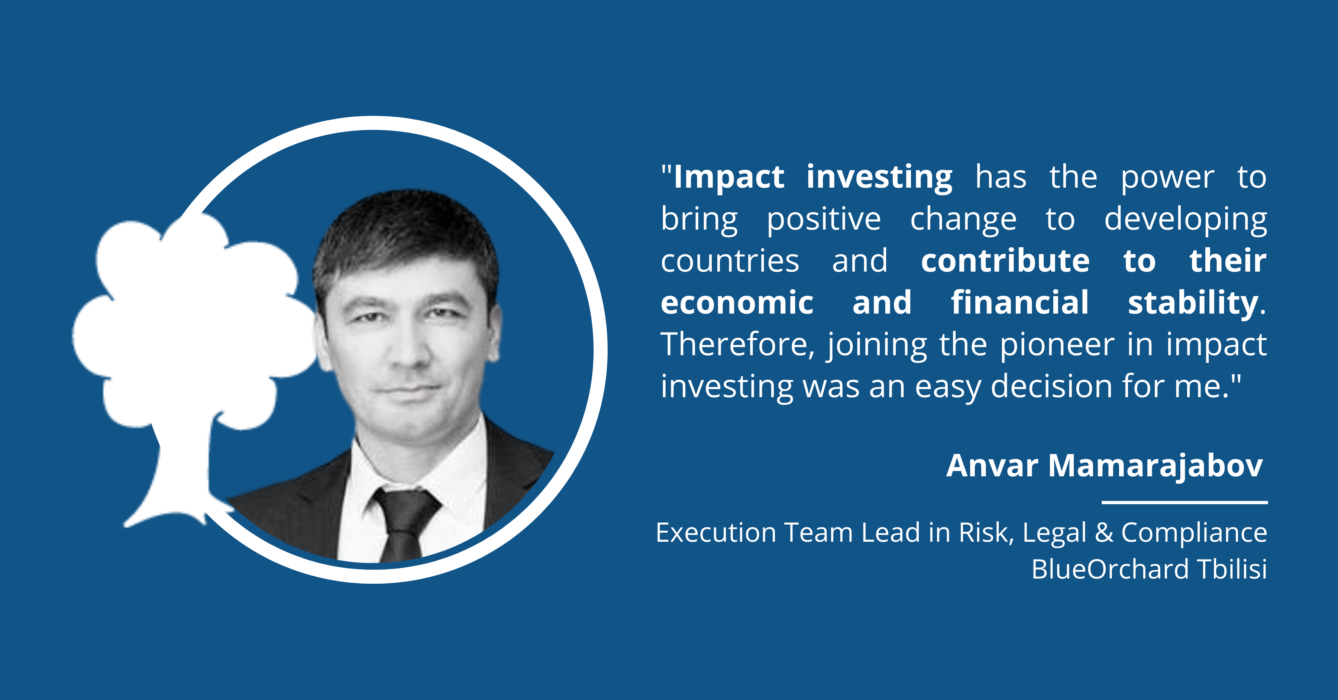 The #BOFaces series introduced you to the people making up BlueOrchard’s dedicated team, spread out across our international offices. This week, we had the pleasure of speaking with Anvar Mamarajabov, our Execution Team Lead in Risk, Legal & Compliance based in the Tbilisi office. We took this opportunity to get to know a bit more about Anvar, his hobbies, and motivations for joining BlueOrchard.