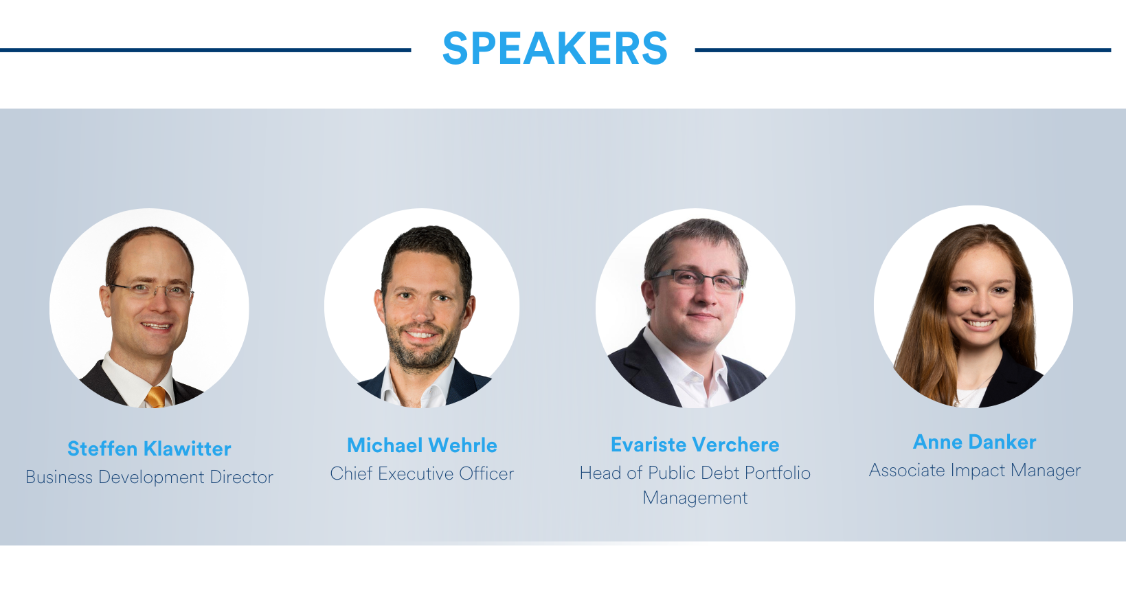 Join us for an insightful session with our newly appointed CEO, Michael Wehrle, alongside our investment and impact teams. Gain firsthand knowledge on building a strong impact portfolio in the public markets and take a deep dive in the selection process of impactful bonds, such as labelled bonds.