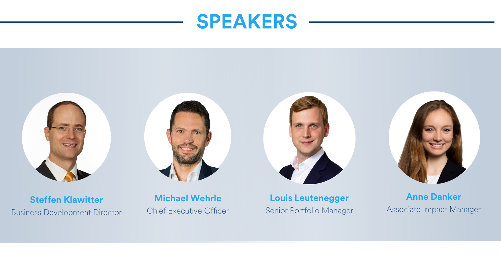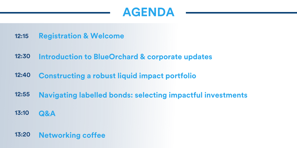 Bei dieser Veranstaltung werden Ihnen Michael Wehrle, unser neu ernannter CEO, sowie unsere Investment- und Impact-Teams Einblicke in die Konstruktion eines Impact-Anleihen-Portfolios sowie den Auswahlprozess von Impact-Anleihen, wie beispielsweise gekennzeichneten Anleihen, geben. Wir freuen uns auf Ihre Teilnahme!