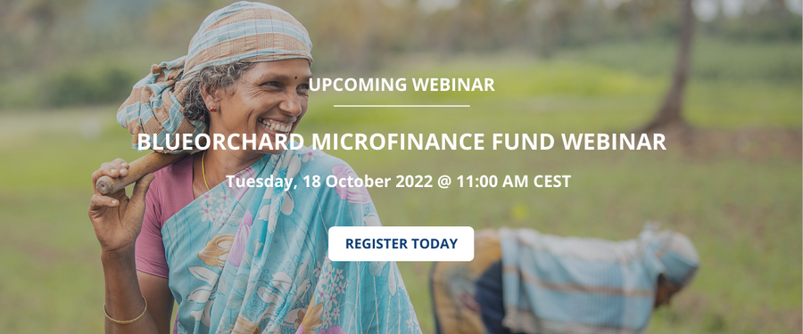 We are pleased to invite you to the next BlueOrchard Microfinance Fund (BOMF) webinar taking place on Tuesday the 18th of October 2022 at 11:00 AM CEST.