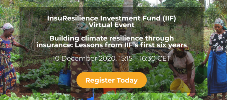 We are pleased to invite you to the InsuResilience Investment Fund (IIF) side event at this years’ InsuResilience Global Partnership Annual Forum. Join us for a panel discussion on ‘Building climate resilience through insurance: Lessons from IIF’s first six years’.