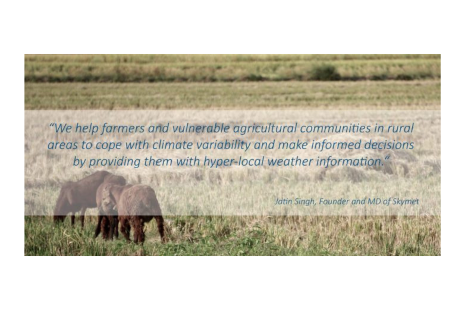 Jatin: Every year, unpredictable or irregular weather events in India cause unprecedented losses of capital and production, resulting in, for example, inflation in food prices. This is where Skymet comes in. We help farmers and vulnerable agricultural communities in rural areas to cope with climate variability and make informed decisions by providing them with hyper-local weather information. To realize this goal, over 7000 Automated Weather Stations (AWS) have been installed to generate real-time weather and crop monitoring data in order to extrapolate weather parameters in the near term. Besides weather information, we also provide farmers with customized real-time weather-based crop advisory. This permits Indian farmers to make time-sensitive decisions regarding crops, irrigation, pesticides, fertilizers and the like.